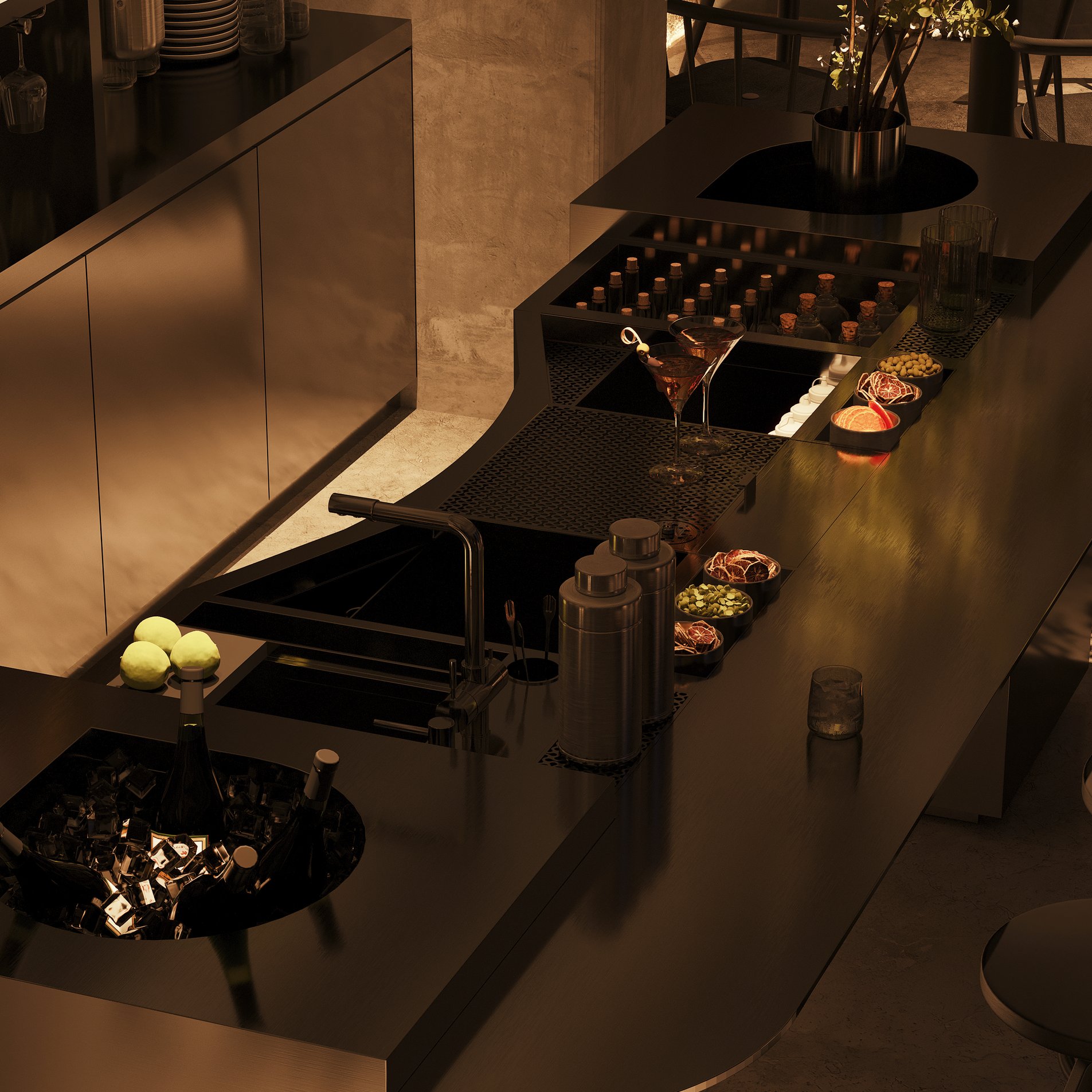 The station is designed for one bar chef.